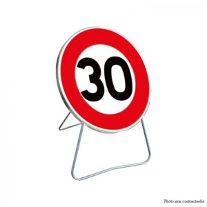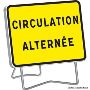 Panneau B21 temporaire “disque fleche orientable ” sur pieds solidaires